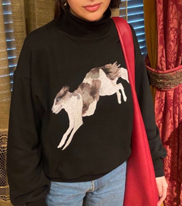 Buzo de frisa de algodon con cuello alto en rib y estampa en dtg.